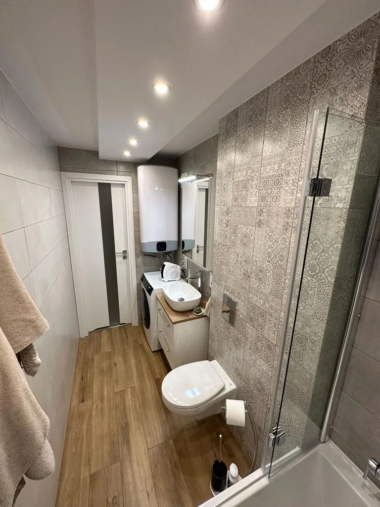 Łazienka tynkowana ręcznie, wylewki przygotowane na wymiar zgodnie z życzeniem klienta